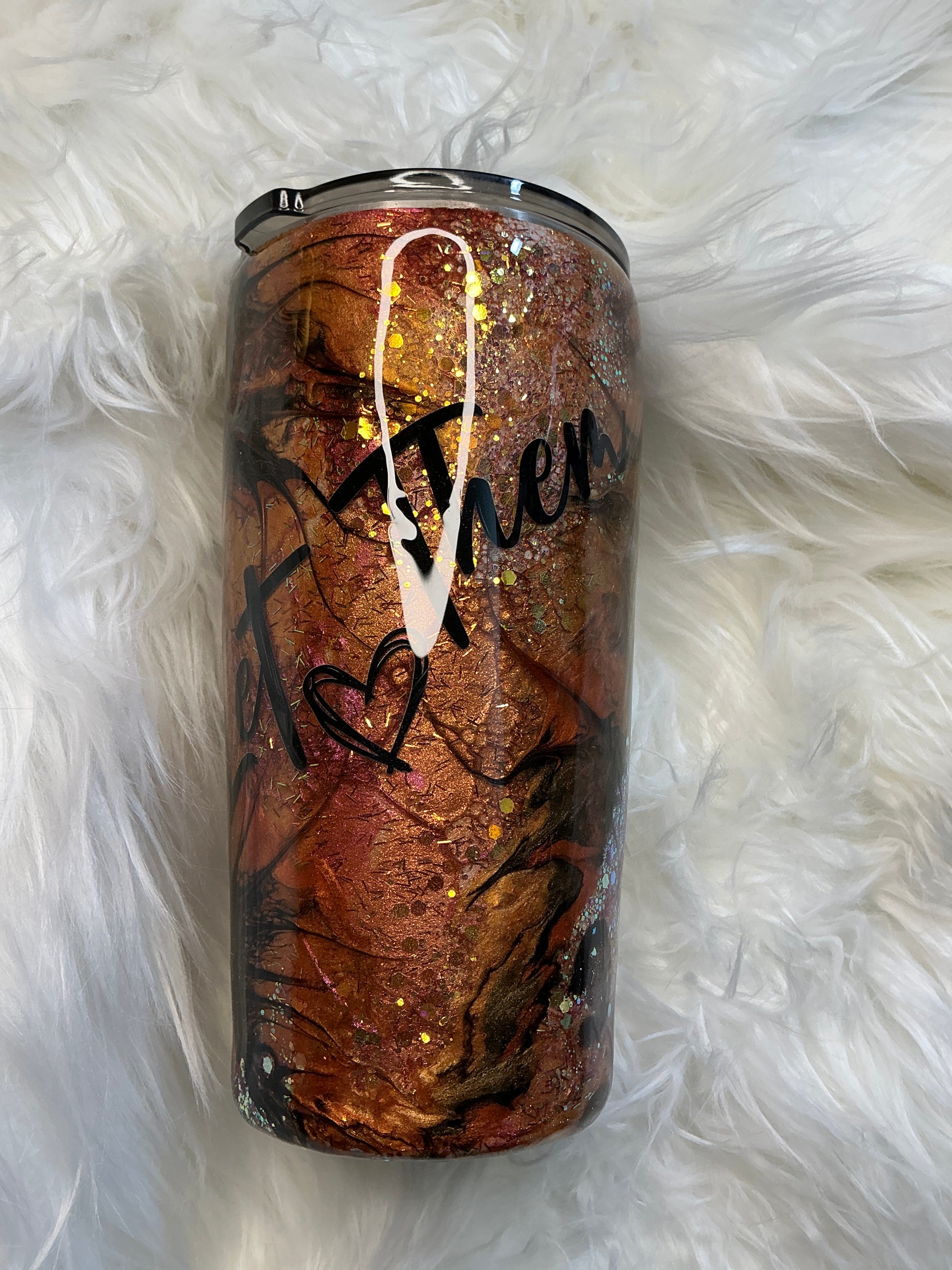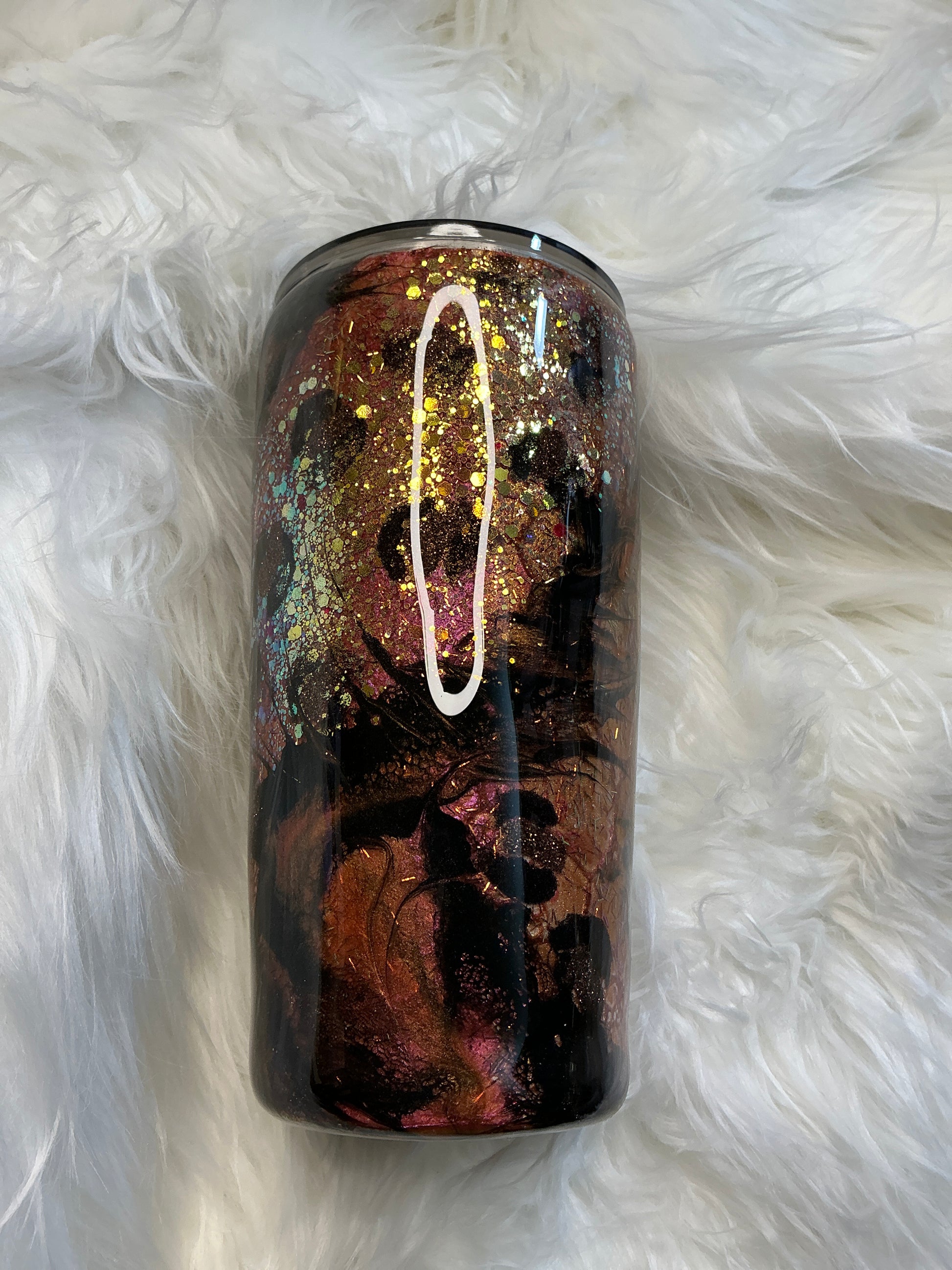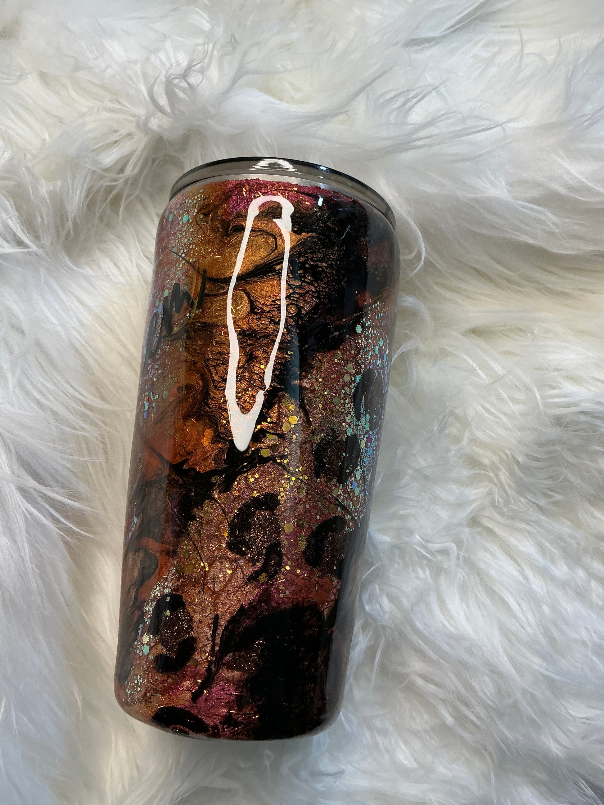 20 oz straight. Let Them phrase on a dragon scale technique with a glitter leopard design.