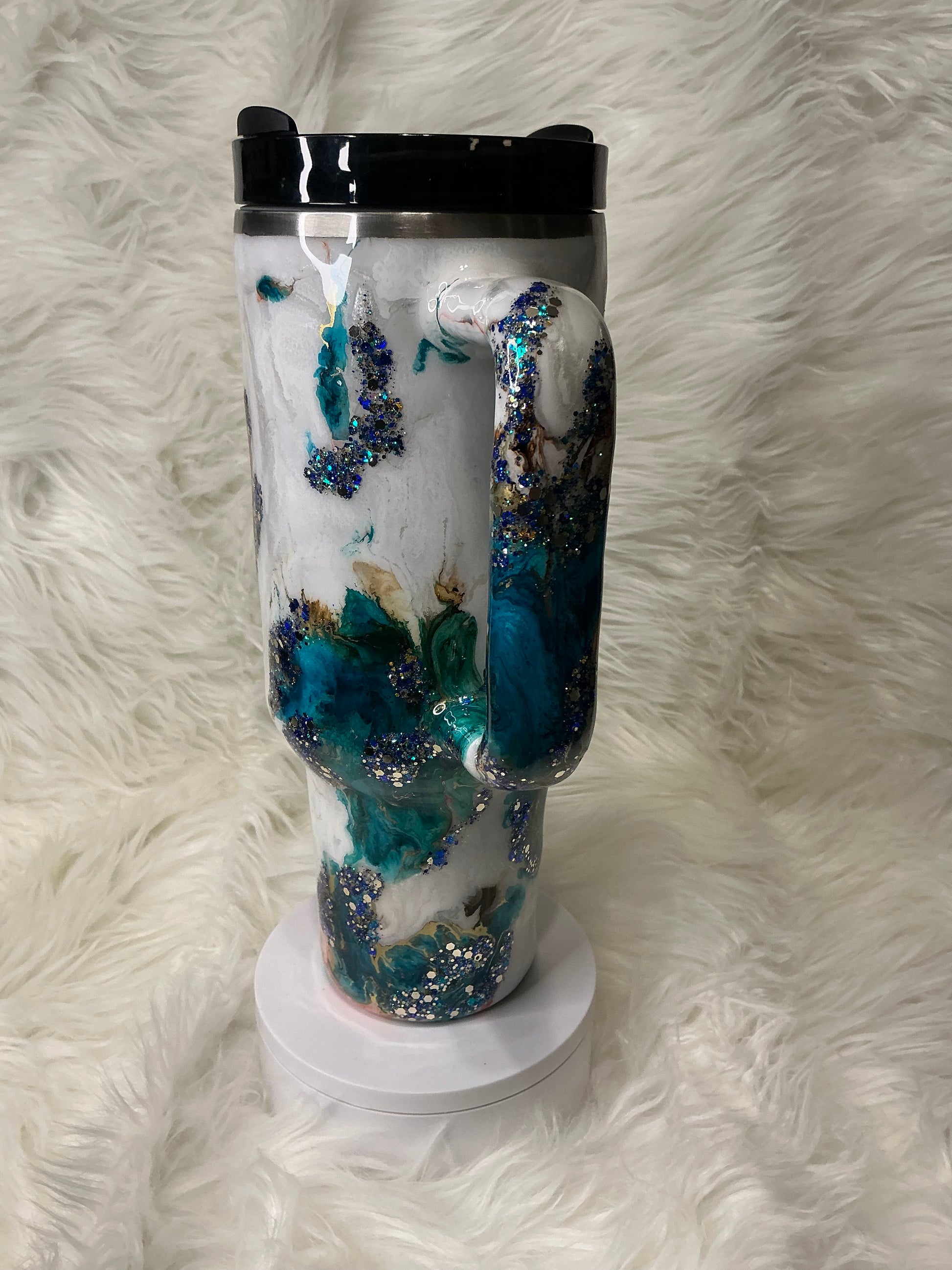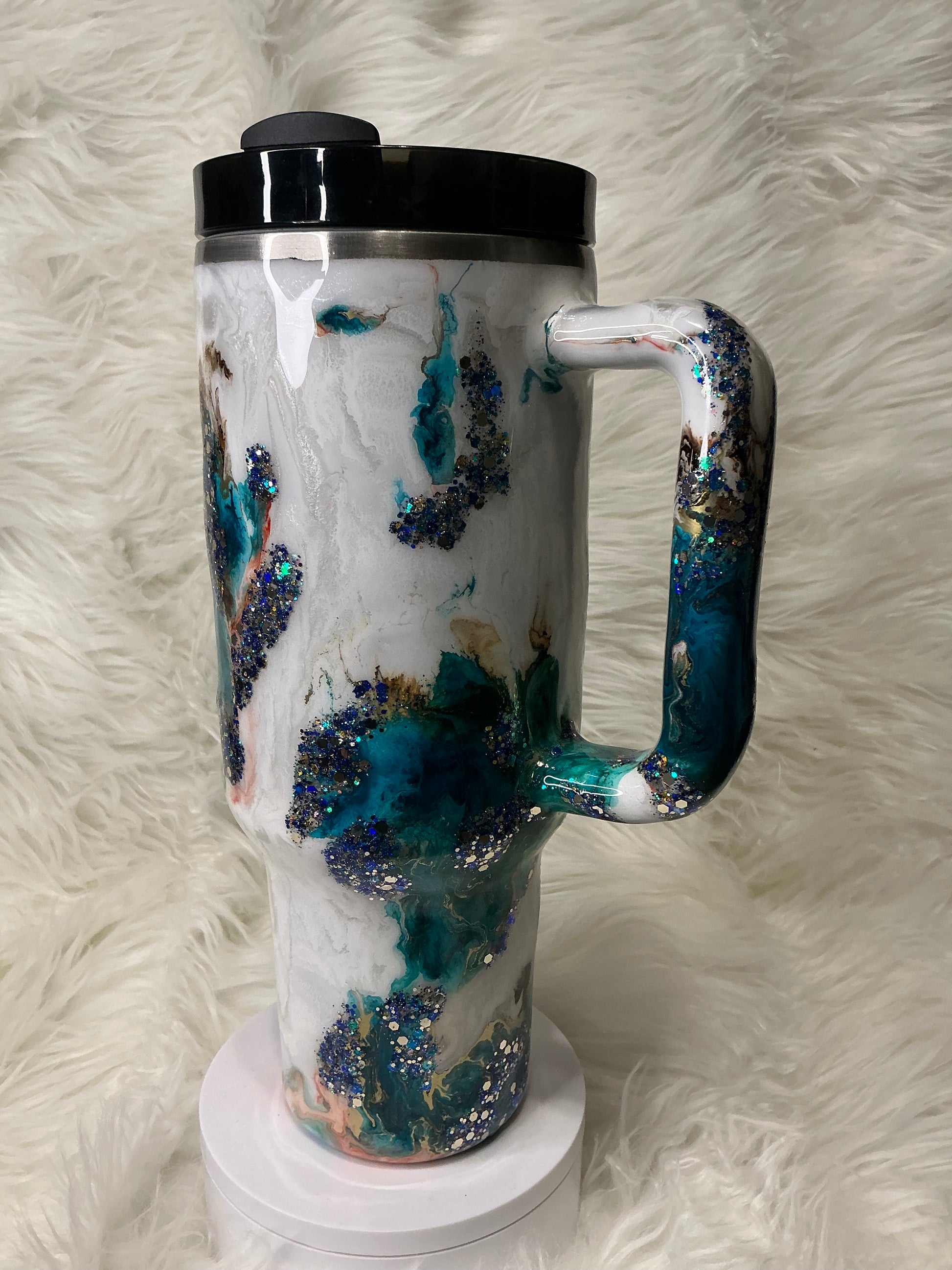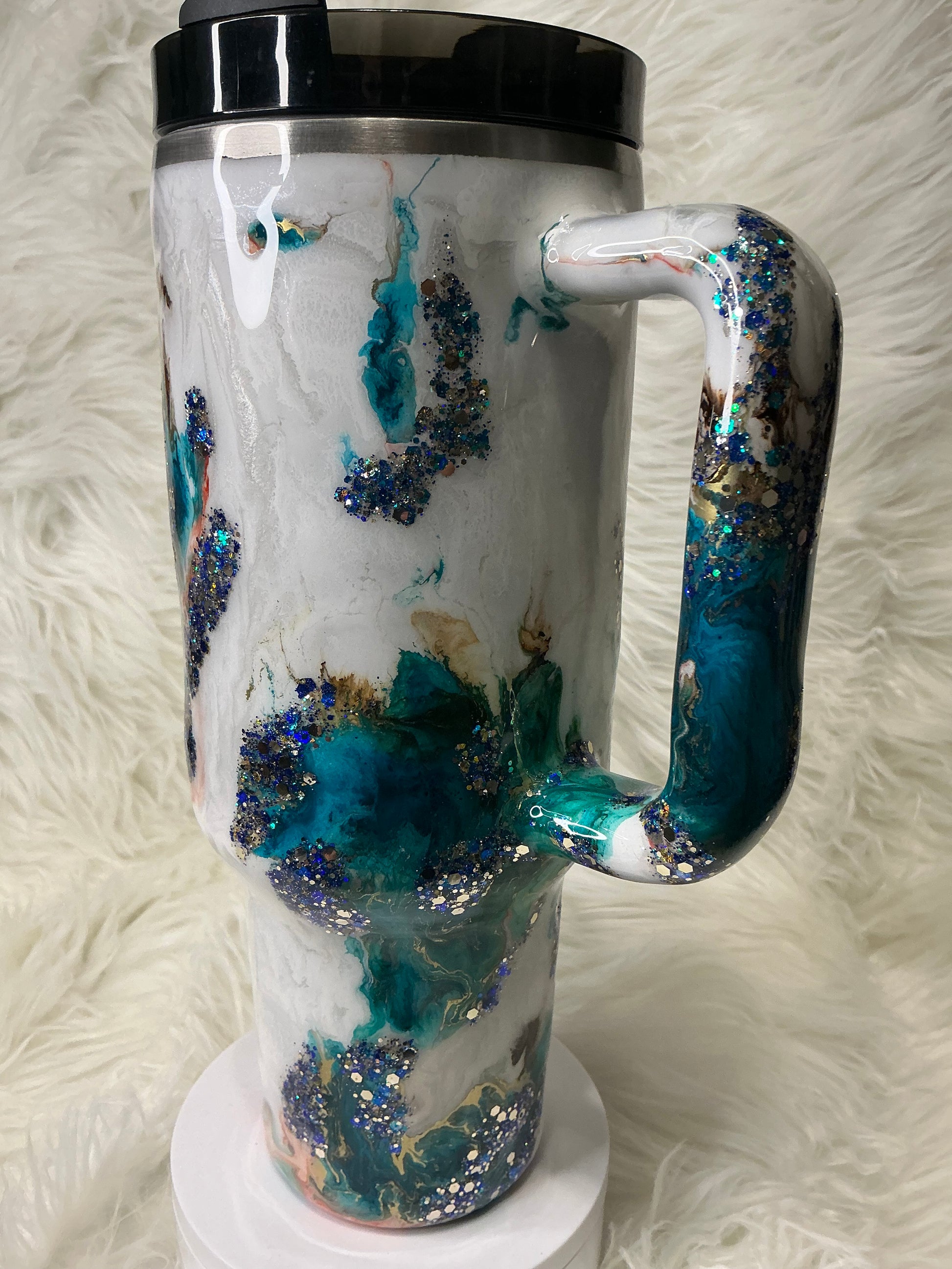40 oz Traveler tumbler in classic western marble with bling (chunky glitter).