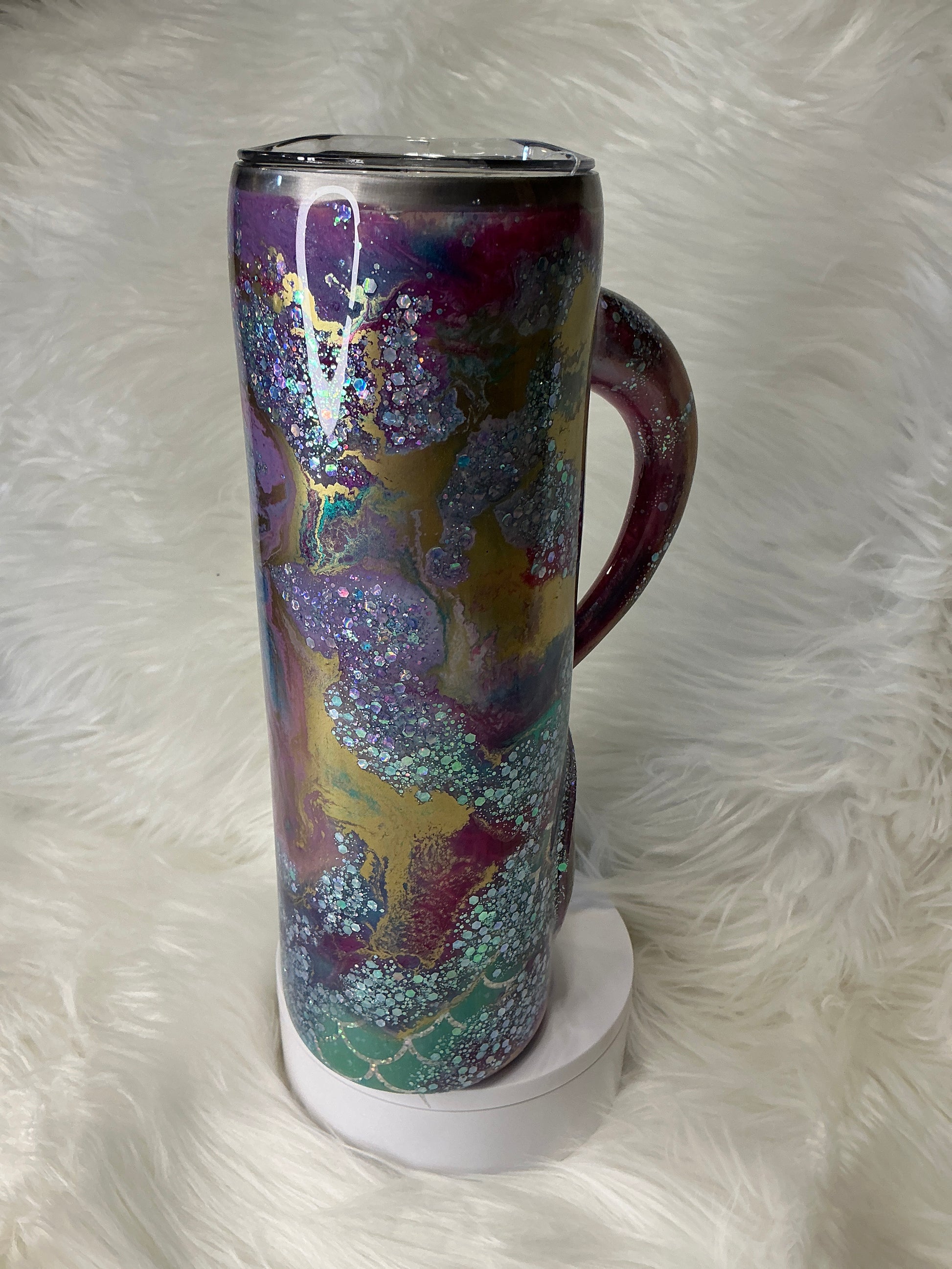 30 oz skinny with a 3-D mermaid tail and foils with chunky glitter.